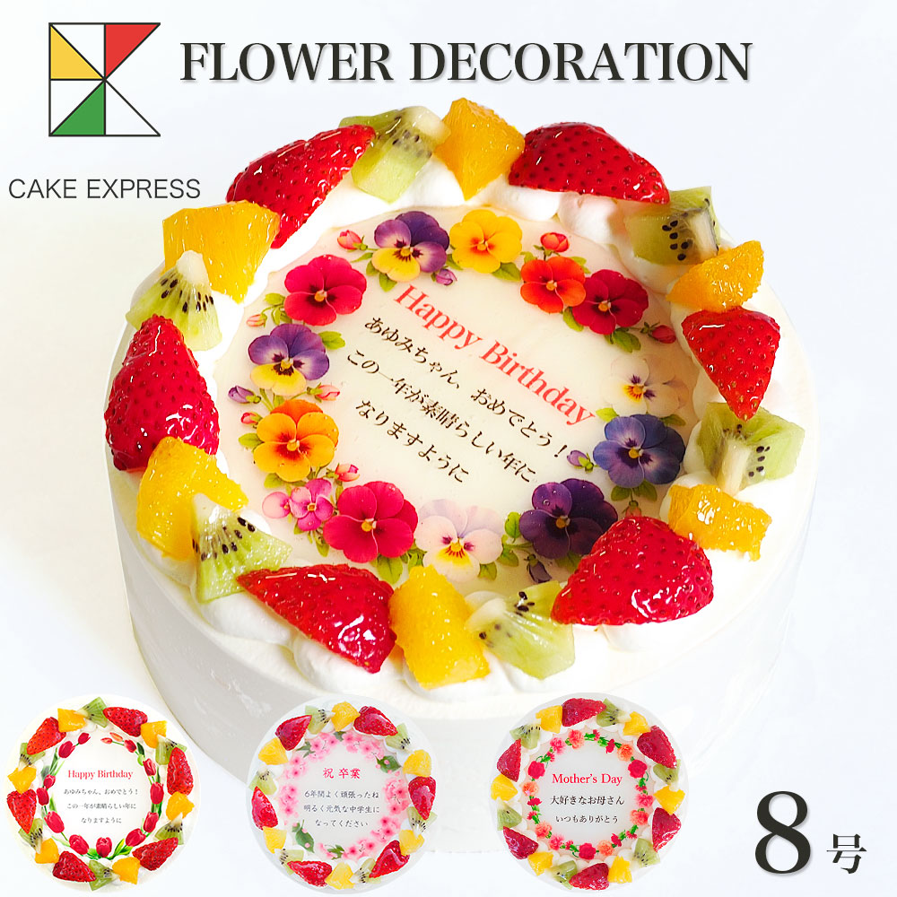 | 商品名 | 誕生花ケーキ メッセージプリント フレッシュ生クリームのフルーツデコレーションケーキ 8号 24cm 15〜18名様用 |