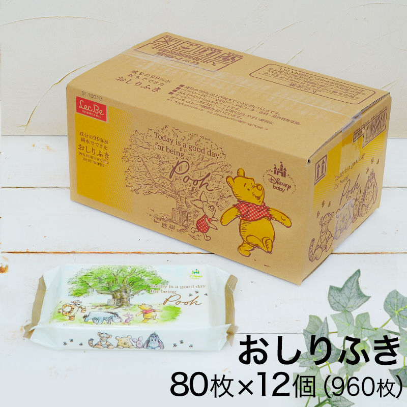 おしりふき お尻拭き おしり拭き ディズニー くまのプーさん 80枚×12個 水99% ウェットティッシュ ケース lec レック 日本製 ギフト プレゼント
