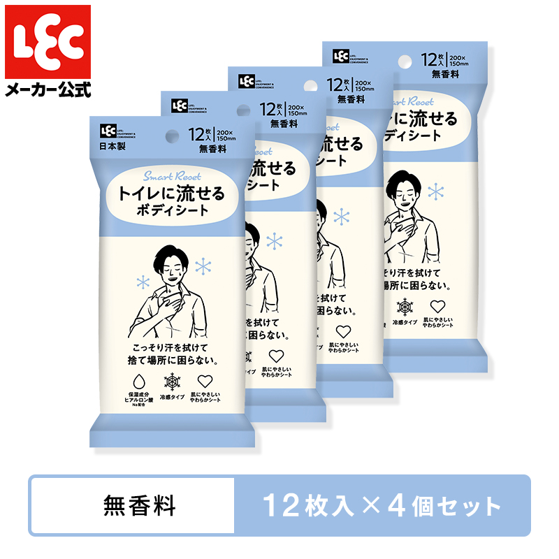 ボディシート ボディーシート 汗ふきシート 汗拭きシート シート メンズ トイレ 流せる 男性 無香料 12枚入×4個 レック lec
