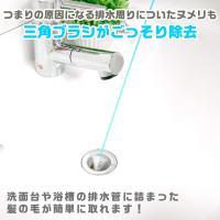 ●直径約3.5cmの三角形ブラシが、髪の毛を絡み取るだけでなく、パイプについたヌメリも取ることができます。