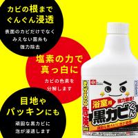 ●浴室のガンコなカビを落とす。 密着する泡が黒カビに浸透し、漂白します。