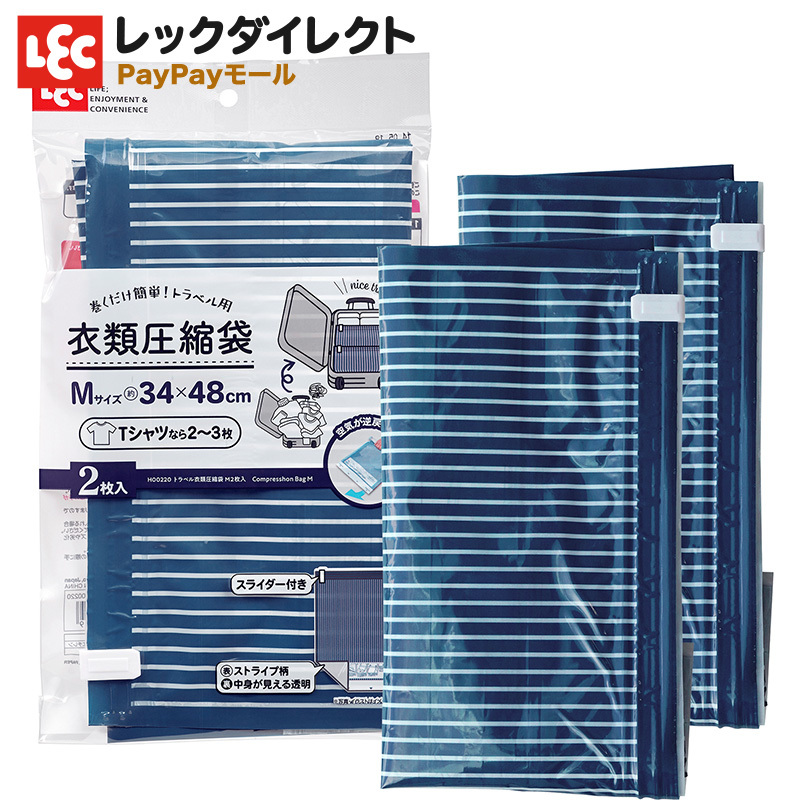 旅行圧縮袋 手巻き圧縮 【トラベル用 Mサイズ】 衣類圧縮袋 2枚入 掃除機不要 逆止弁