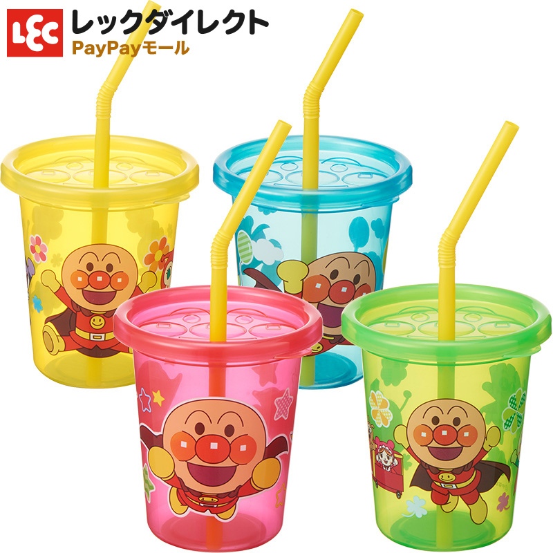 アンパンマン ストローカップ 食器 S 4個入(4色別柄:レッド/ブルー/イエロー/グリーン) ※市販ストロー対応