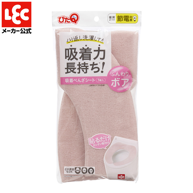 トイレ 便座シート 吸着 ぴたQ ボア ピンク 無地 洗濯可能 抗菌 防臭 繊維使用 貼る 節電 節約 レック lec