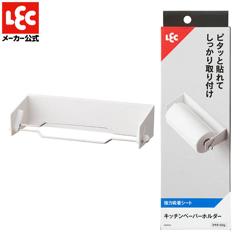 キッチンペーパーホルダー ペーパータオルホルダー キッチンペーパー ペーパーホルダー ホルダー 片手 ペーパータオル ホワイト 強力吸着 レック lec