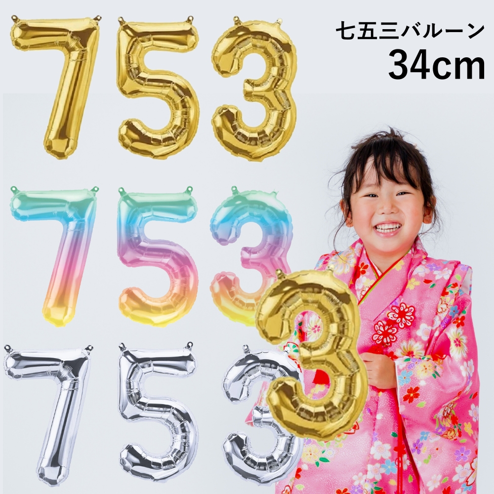 七五三 バルーン 数字 誕生日 バルーン レインボー ゴールド シルバー 34cm ジェリーオンブレ デコレーション 装飾 お誕生日の飾り付けに パーティー