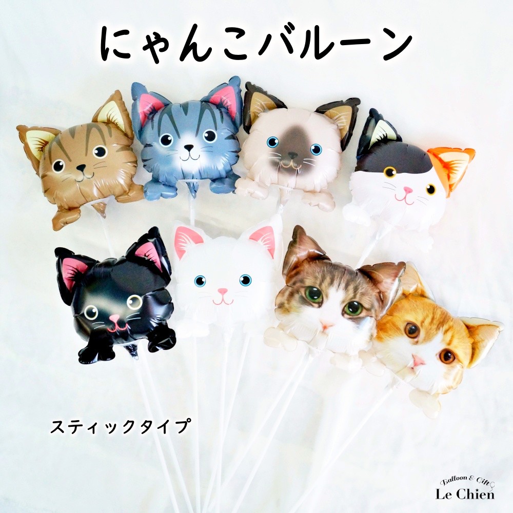 スティックバルーン ネコ 猫 ねこ バルーン 風船 プロップス 誕生日 飾り付け デコレーション おしゃれ かわいい 小道具 顔 花束 材料 資材