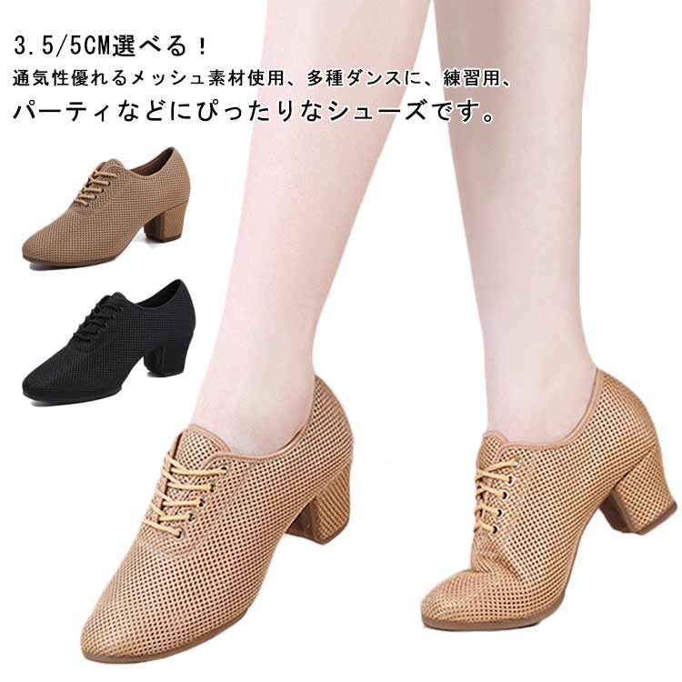 | 3.5/5cm選べる!通気性優れるメッシュ素材使用、多種ダンスに、練習用、パーティなどにぴったりなシューズです。 オールシーズン使えるダンスシューズ。 シンプルなデザインはカジュアルに、スタイルやきれいめコーデにと、どんなスタイルにも合わせやすい便利アイテム! | |