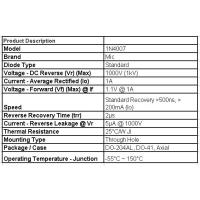1A 50Vの1N4001よりも高性能な、1A 1000Vまで対応可能な1N4007となります。