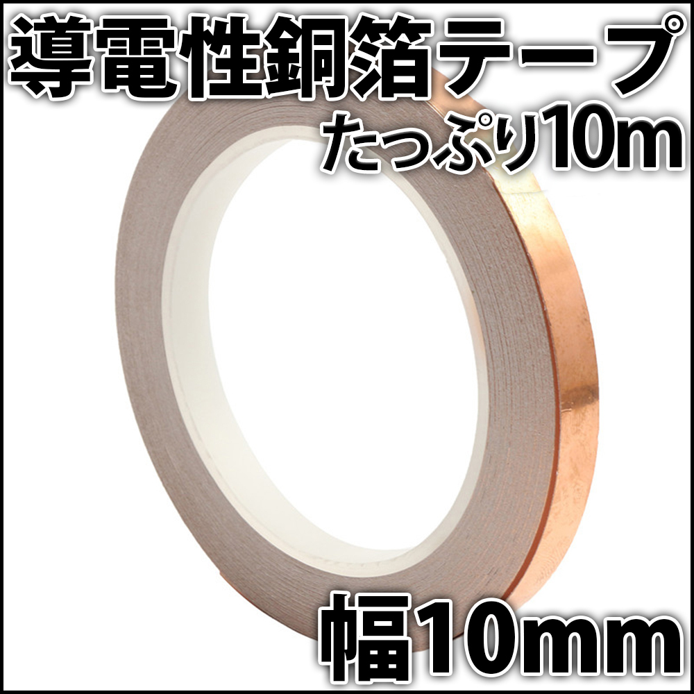 10mm幅 銅製 導電性片面銅箔テープ 10m 1ロール プロトタイプ回路設計、LEDの導線としてもOK!!ノイズ対策や電磁波シールドにも