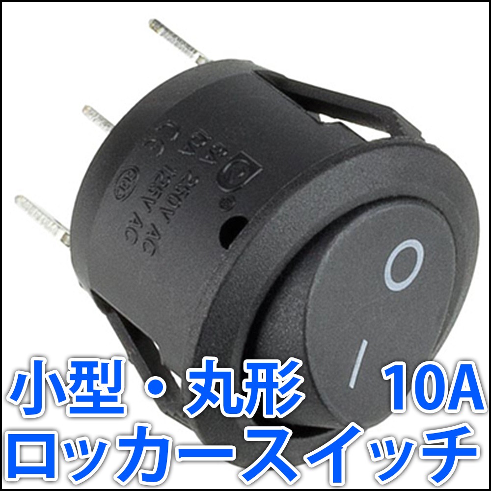 小型 高容量 丸形 ロッカースイッチ 1回路2接点 単極双投 10A 250V (シーソースイッチ・オンオフスイッチ・ONOFFスイッチ) オルタネイト型
