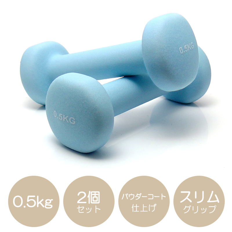 ダンベル 0.5Kg パウダーコーティング仕上げ 筋トレ ダイエット トレーニング 防転がり設計 ブルー 2個セット