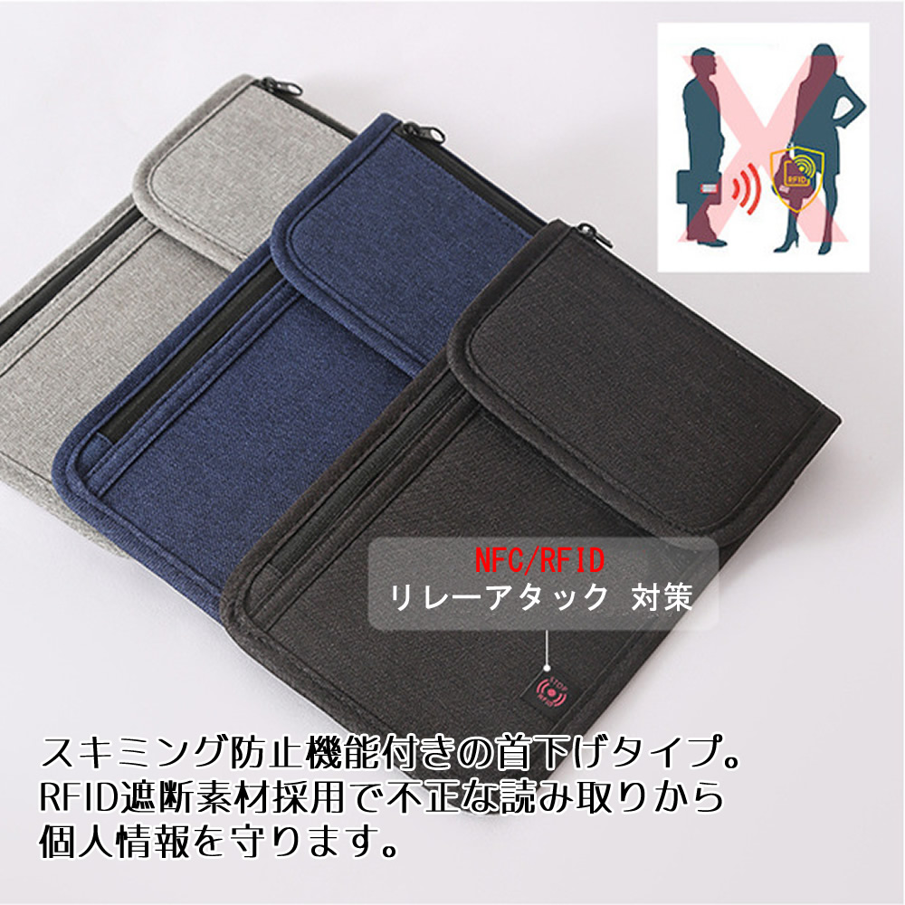 パスポートケース リレーアタック対策 首下げ スキミング防止 電磁波遮断 ポーチ RFID パスポート入れ 首かけ 防水 軽量 トラベルポーチ 出張 海外旅行 便利グッズ 大容量 収納ポーチ 旅券ケース