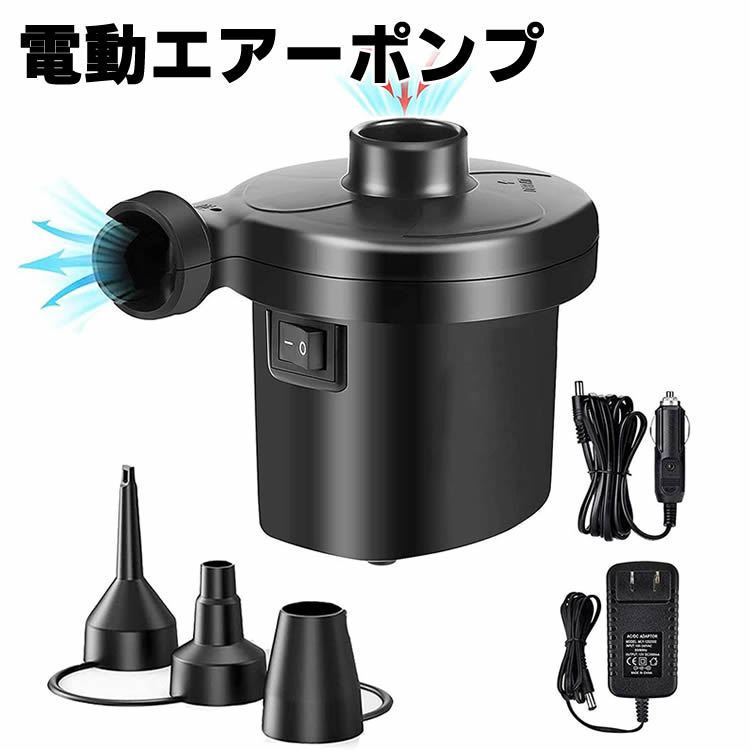 電動エアーポンプ,空気入れ,空気抜き,両対応,AC電源100V,3種類のノズル付き,エアプール,エアベッド,真空収納,日本語取扱説明書付き,PSE認証済み