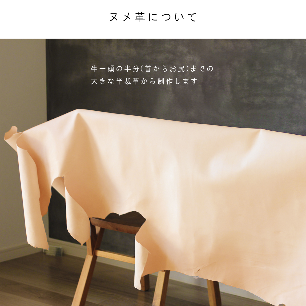 本革独特の素朴な匂いや革本来のなめらかな手触りを持つヌメ革は、「革の中の革」とも呼ばれています。