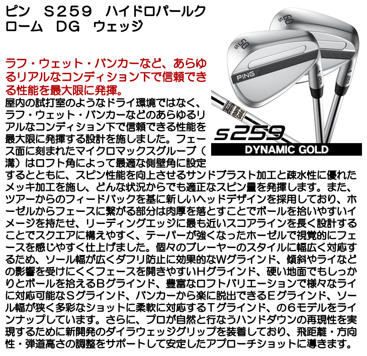 PING ピン S259 ハイドロパールクロームウェッジ ダイナミックゴールド 右利き用 2026年モデル 日本正規品