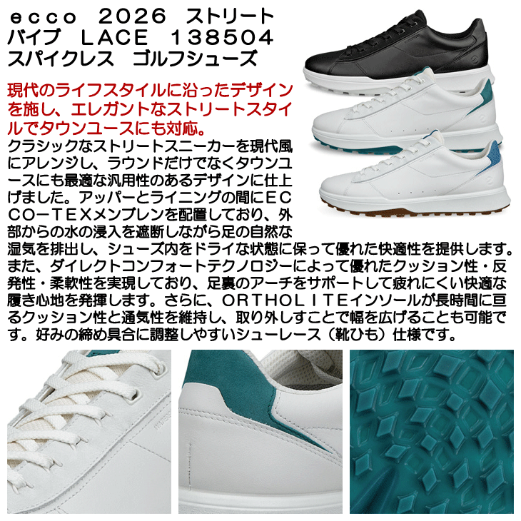 ecco ゴルフシューズ ストリート バイブ 138504 メンズ スパイクレス 紐 シューレース ECCO-TEX 防水 2026年モデル