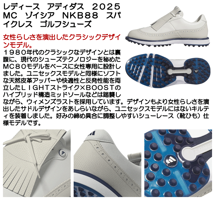 アディダス ゴルフシューズ MC ゾイシア NKB88 レディース スパイクレス 紐 シューレース 防水 2025年モデル