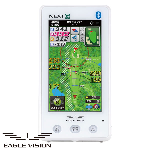 イーグルビジョン NEXT Gは、コース攻略に必要な情報を素早く簡単に取得できるハンディ型GPSゴルフナビです。新たに搭載されたコースアンジュレーション機能では、色と等高線によってコースの起伏を視覚的に確認でき、さらにシリーズ初となるグリーンアンジュレーション機能で、グリーンだけでなく周辺の微妙な傾斜まで把握できます。同じく新機能のどこでも3点間距離・どこでも高低差機能により、画面上の任意地点をタッチするだけで、その地点までの距離と、ピンまでの残り距離、高低差を同時に表示でき、より戦略的なコースマネジメントを可能にします。フェアウェイワイド表示によってフェアウェイの中でも幅の広い地点を狙えるようになり、より安心して次のショットに臨むことができます。また、専用アプリ「EV PRO」との連携により、当日の風向きや風速を表示するウインドサポート機能も搭載されています。