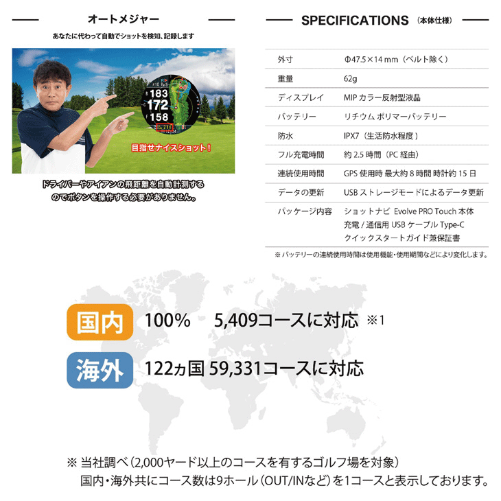 ショットナビ GPSゴルフナビ EVOLVE PRO TOUCH エボルブ プロタッチ 日本正規品