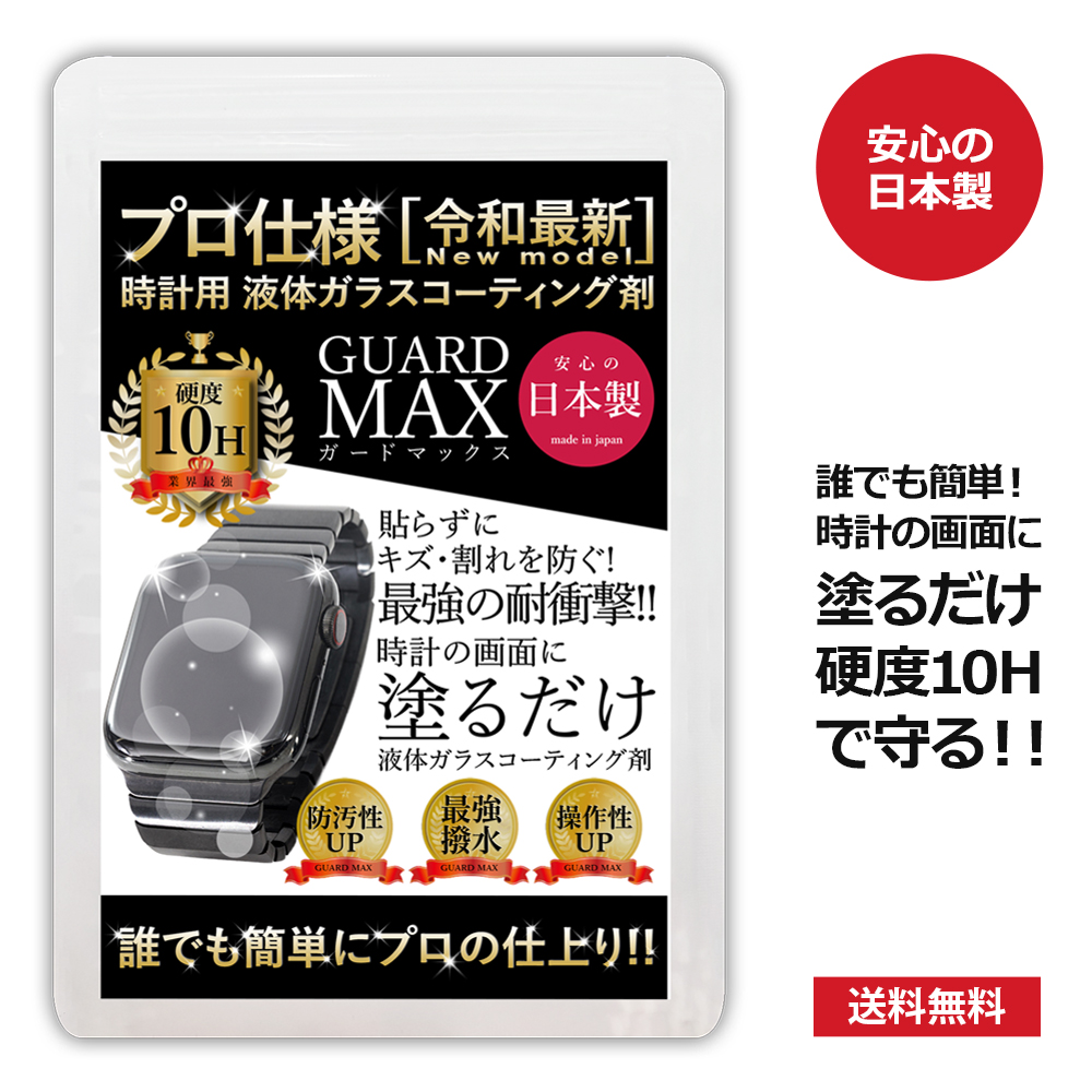 ■安心の日本製!特許取得の液体ガラスコーティング剤「ガードMAX」は、硬度10Hの強度でアップルウォッチなどスマートウォッチ(時計)を落下による破損やキズなどから保護します!