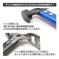 ペグを打つ、ペグを抜く、土を掘るの3つの機能がひとつになった多機能ペグハンマー。すっぽ抜け防止のストラップ付き。軽量で扱いやすいハンマーなので、荷物の重量をできるだけ軽くしたいソロキャンプや登山などにおすすめ。テントの設営、タープやシェードを固定するペグを打ち込むときはもちろん、DIYなど日常作業にも。キャンプやアウトドアははじめ、様々なシーンで大活躍してくれます。