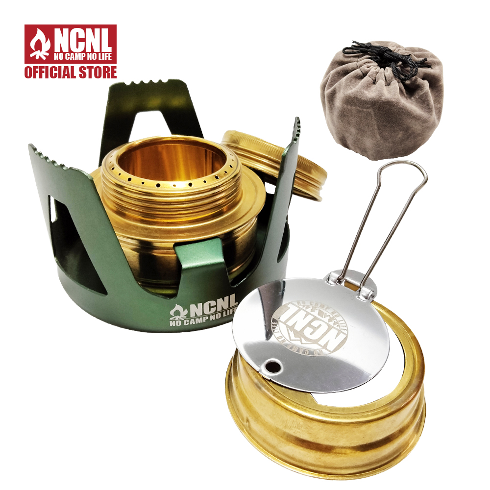 NCNL NO CAMP NO LIFE アルコールストーブ バーナー キャンプ 軽量 五徳 蓋 登山 収納袋付き (グリーン)