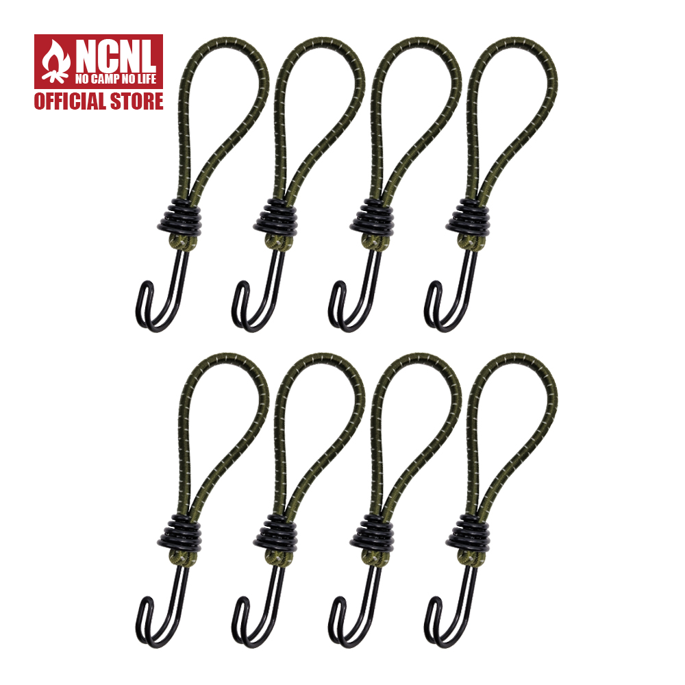 NCNL NO CAMP NO LIFE ストレッチコード オリーブ 8本 ツインフック ロープフック テントフック ゴムフック 張綱ツインフック ロープ張り テントアクセサリー