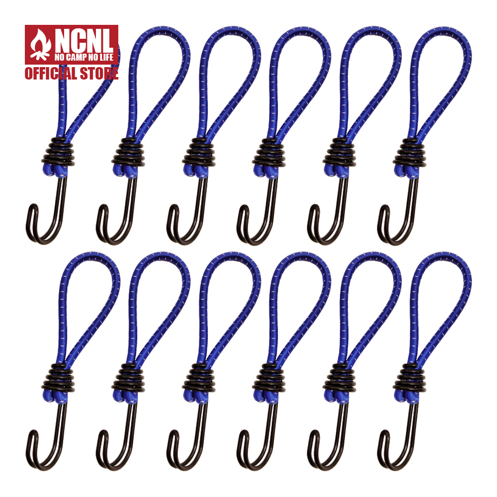NCNL NO CAMP NO LIFE ストレッチコード ブルー 12本 ツインフック ロープフック テントフック ゴムフック 張綱ツインフック ロープ張り テントアクセサリー