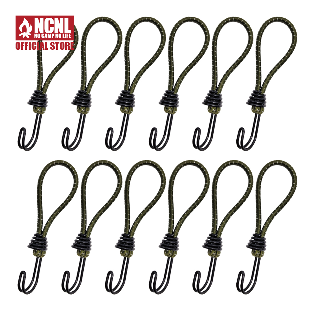NCNL NO CAMP NO LIFE ストレッチコード オリーブ 12本 ツインフック ロープフック テントフック ゴムフック 張綱ツインフック ロープ張り テントアクセサリー