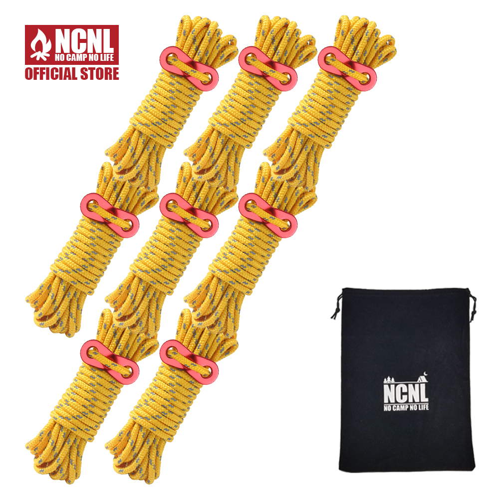NCNL NO CAMP NO LIFE パラコード テントロープ ガイロープ 反射材入り 耐荷重 430kg 太さ 5mm 長さ 4m 自在金具 収納袋付き (イエロー 8本セット)