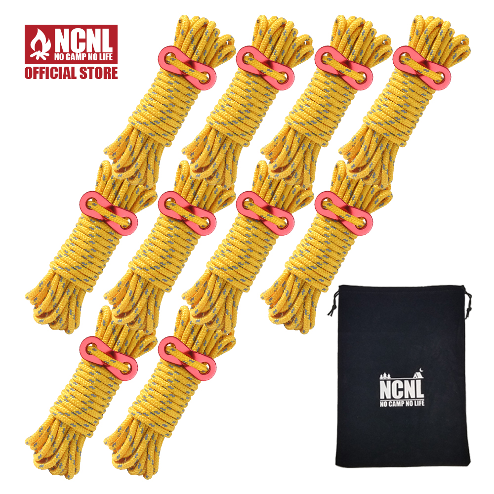 NCNL NO CAMP NO LIFE パラコード テントロープ ガイロープ 反射材入り 耐荷重 430kg 太さ 5mm 長さ 4m 自在金具 収納袋付き (イエロー 10本セット)