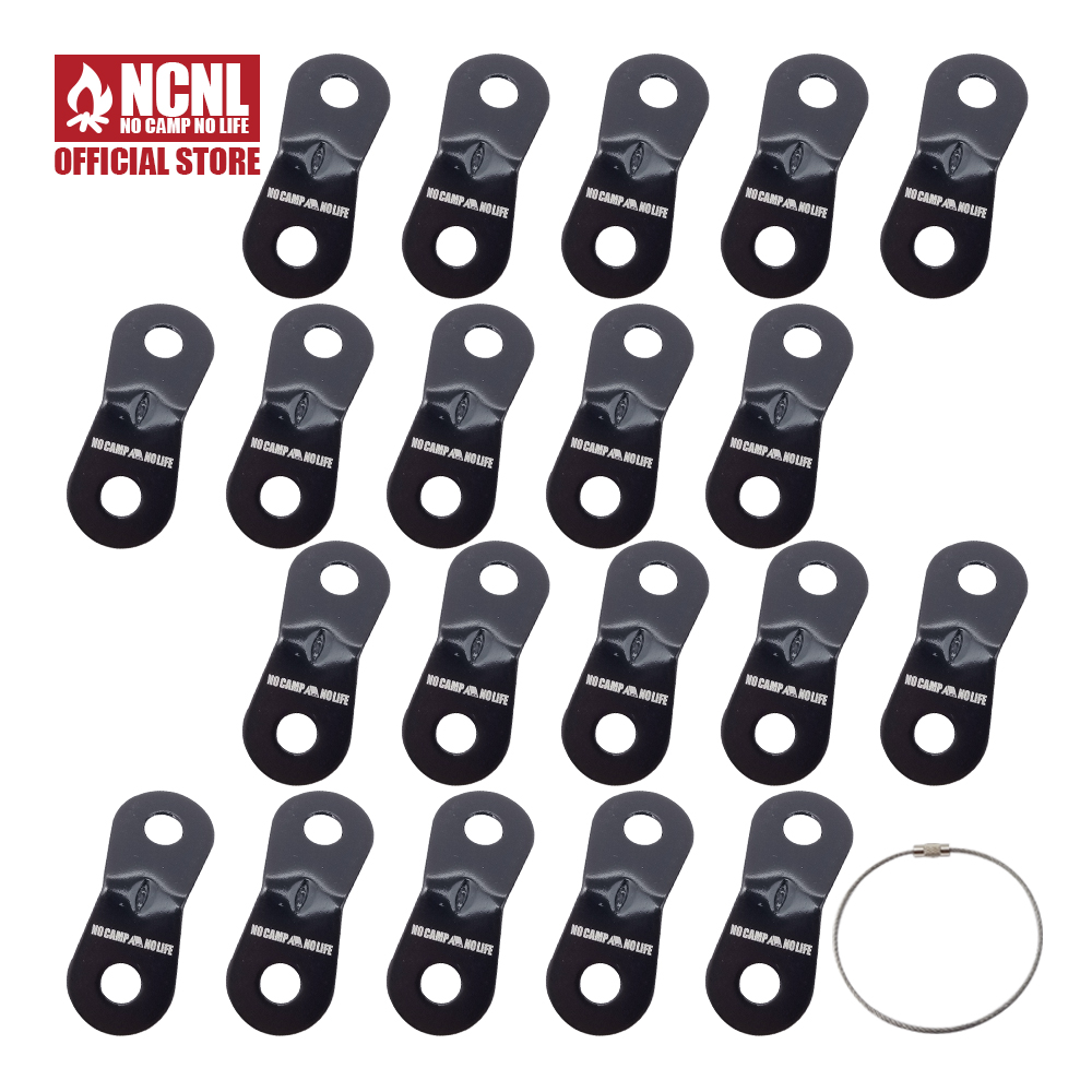 NCNL NO CAMP NO LIFE 自在金具 二つ穴型 ブラック 20個 アルミ テント タープ ロープ 長さ調整 ロープテンショナー ガイラインライナー 収納用ワイヤー付き