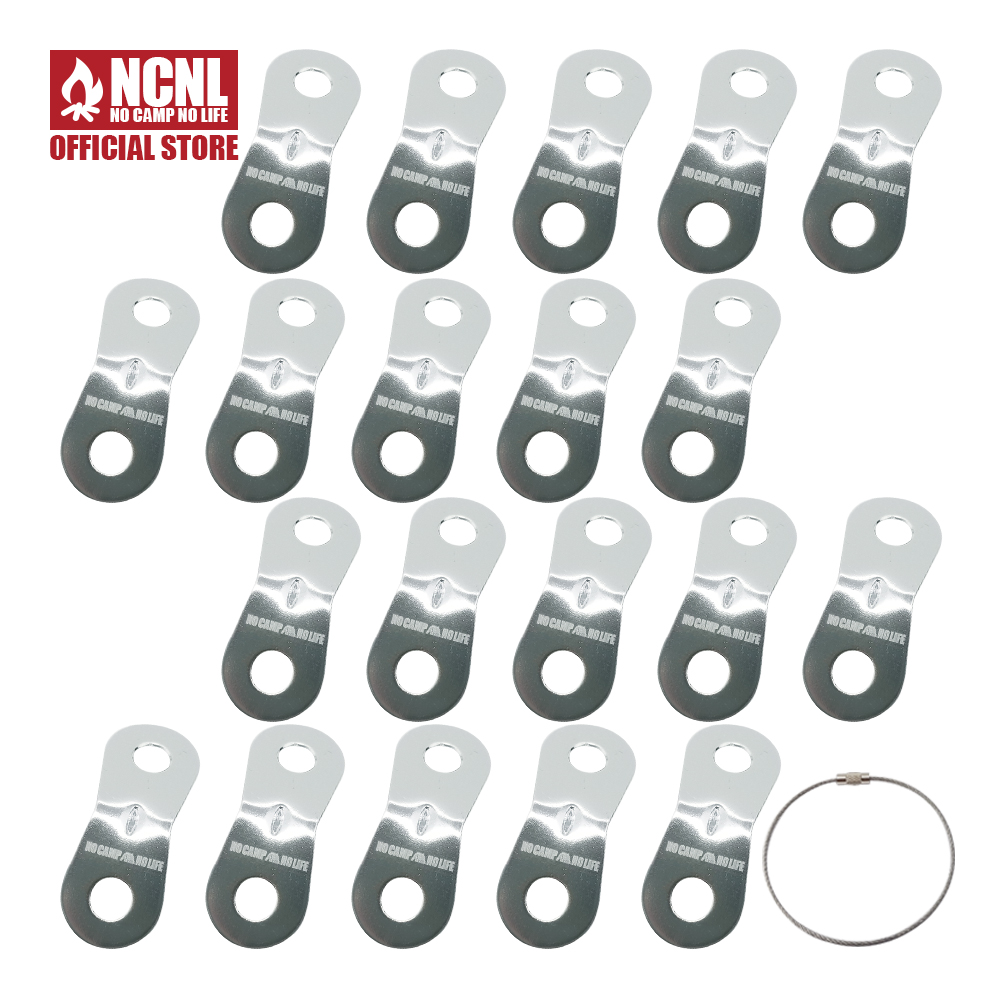 NCNL NO CAMP NO LIFE 自在金具 二つ穴型 シルバー 20個 アルミ テント タープ ロープ 長さ調整 ロープテンショナー ガイラインライナー 収納用ワイヤー付き