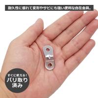 初心者の方でも扱いやすい2つ穴型(プレート型)の便利な自在金具。耐久性に優れたアルミニウム合金製で軽量、頑丈で丈夫なので変形してしまう心配がなく、耐食性にも優れているのでサビにも強い。バリ取り済みなのですぐにお使いいただけます。