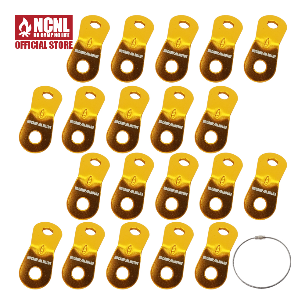NCNL NO CAMP NO LIFE 自在金具 二つ穴型 ゴールド 20個 アルミ テント タープ ロープ 長さ調整 ロープテンショナー ガイラインライナー 収納用ワイヤー付き