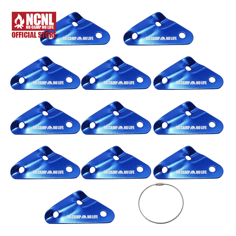 NCNL NO CAMP NO LIFE 自在金具 三角型 ブルー 12個 アルミ テント タープ ロープ 長さ調整 ロープテンショナー ガイラインライナー 収納用ワイヤー付き