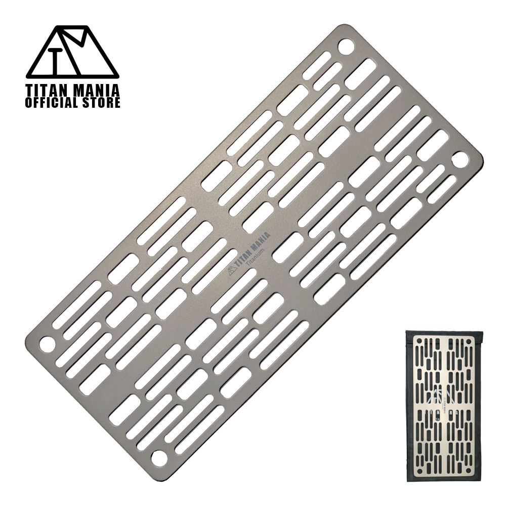 TITAN MANIA チタンマニア グリルプレート 網 S バーベキュー 焼き網 チタン製 鉄板 プレート 超軽量 極軽 角型 頑丈 25cm BBQ アウトドア 収納袋付き