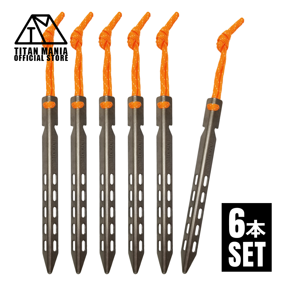 TITAN MANIA チタンマニア ペグ チタン製 V字型 16cm 6本セット チタンペグ テントペグ タープ 超軽量 頑丈 設営 ソロキャンプ 収納袋付き