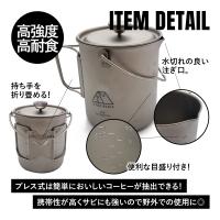 軽量で頑丈!チタン製コーヒーフレンチプレス。プレス式で誰でも簡単に高いレベルのコーヒーを抽出することができます。軽量で携帯性が高いので、荷物を減らしたい・少なくしたいミニマムなウルトラライトキャンプにおすすめ。特別な抽出テクニックは不要でコーヒー豆そのものの味わいを逃さず抽出できます。
