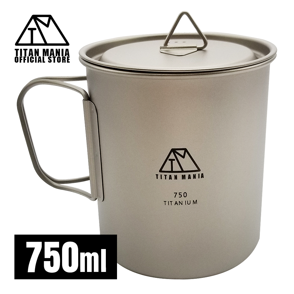 TITAN MANIA チタンマニア チタンマグカップ 750ml 蓋付き ソロキャンプ チタン製 超軽量 頑丈 直火 チタンマグ コップ シングルマグ 折りたたみハンドル付き