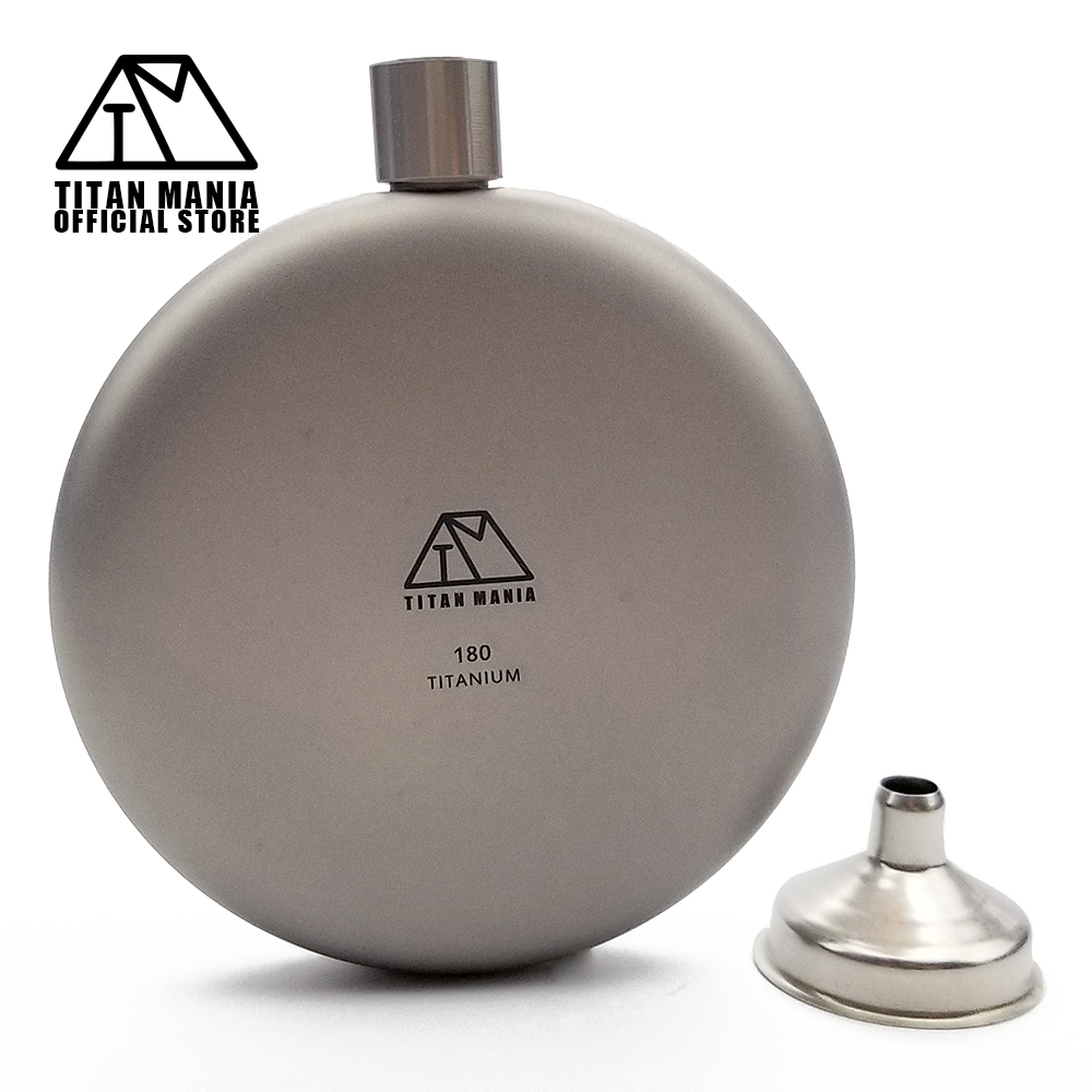 TITAN MANIA チタンマニア スキットル チタン製 丸型 180ml 軽量 ヒップフラスコ チタンスキットル 携帯ボトル おしゃれ 水筒 漏斗付き 収納袋付き