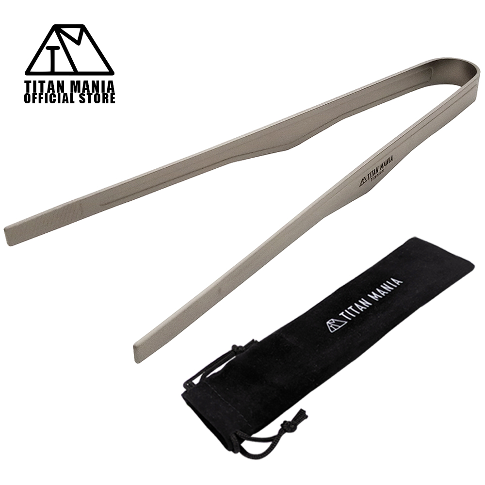 TITAN MANIA チタンマニア トング 大 キャンプ 焚き火 バーベキュー 焼肉 チタン製 アウトドア 先が付かない 自立式 軽量 25.5cm 255mm 錆びない 収納袋付き
