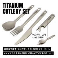 TITAN MANIA チタンマニア カトラリーセット チタン製 超軽量 頑丈 ナイフ スプーン フォーク 栓抜き マルチツール 食器 調理器具 キャンプ用品 収納袋付き