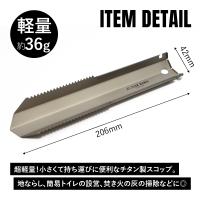 超軽量!小さくて携帯しやすいチタン製スコップ。テント設営時の地ならしや小石の除去、簡易トイレの設営、焚き火の灰の掃除などに便利です!テント用ロープを通せばペグとして使用することも可能!