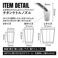 軽量!頑丈!錆にも強いチタン製ケトルノズル。3サイズの耐熱シリコン付き。お手持ちのやかんをドリップケトルに!ゆっくり蒸らしながら注ぐことができるのでコーヒーを美味しく淹れられる!