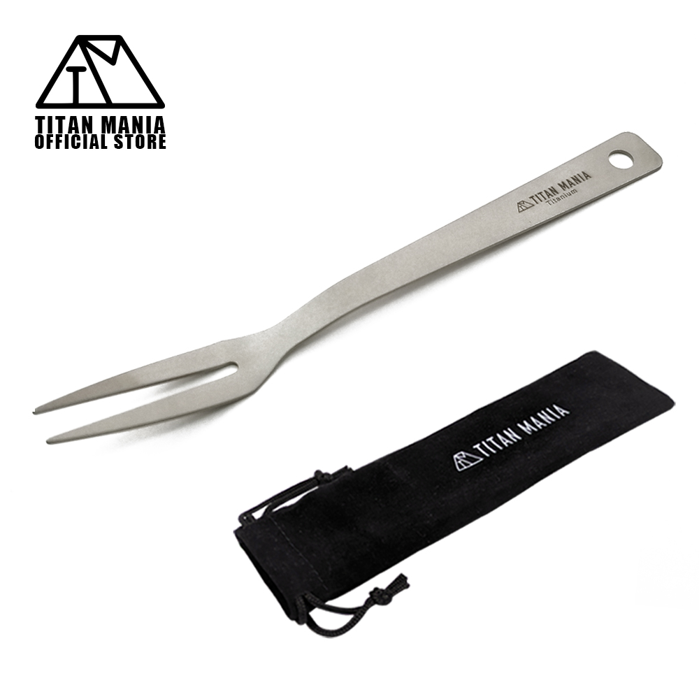TITAN MANIA チタンマニア ミートフォーク チタン製 超軽量 ミニ フォーク カービングフォーク ピックフォーク キャンプ 調理器具 キャンプ用品 収納袋付き