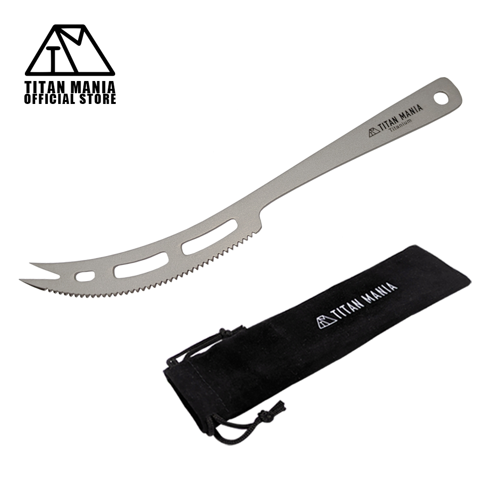 TITAN MANIA チタンマニア ミートナイフ チタン製 超軽量 ミニ テーブルナイフ フォーク キャンプ 調理器具 キャンプ用品 収納袋付き