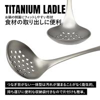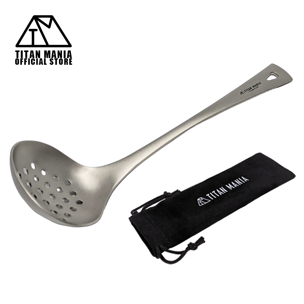 TITAN MANIA チタンマニア 穴あきおたま レードル スキマー チタン製 軽量 頑丈 直火 お玉 一体型 調理器具 キッチンツール キャンプ 収納袋付き