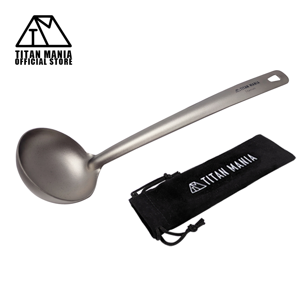 TITAN MANIA チタンマニア おたま 軽量タイプ レードル スキマー チタン製 超軽量 頑丈 直火 お玉 一体型 調理器具 キッチンツール キャンプ 収納袋付き